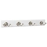 Turn to this handsome wall-mounted hook rack for an attractive way to add extra hanging space in any room. The unit's four double side-by-side hooks, beautifully finished in satin nickel, come attached to an elegant wood board with profiled edges that lend a sense of modern charm to any decor. Furthermore, the hooks provide round-shaped tips to prevent injury or snagging. The hanging rack's unique design installs quickly and easily with no measuring required and no visible screws when mounted. All hardware comes included. Ideal for a high-traffic foyer or hallway, the sleek-looking rack also works well in a bedroom, laundry room, or anywhere that could use extra hanging space. The four-hook hanging wall rack measures 2-4/5 by 21 by 3-1/5 inches.