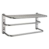 1541 Sometime a regular towel bar is not enough. Gatco has the perfect solution to this problem with its 20" Three Tier Towel Rack in Chrome. Its design gives you extra room for your towels, with a shelf on the top and two widespread bars on the bottom. The chrome finish and transitional style will be at home in most bathroom settings. Features :- Spa Towel Racks Shelves Collection - Available in a chrome finish - Transitional style - Must be installed in to the wall - Exposed screws - One shelf and two towel bars - Also available separately in the following finishes: - Satin Nickel - Polished Brass - Burnished Bronze -Distance to the Wall from Top Shelf: 9" D -Distance to the Wall from Middle Bar: 3" D -Distance to the Wall from Botton Bar: 5" D -Overall Dimensions : 10" H x 20.5" W